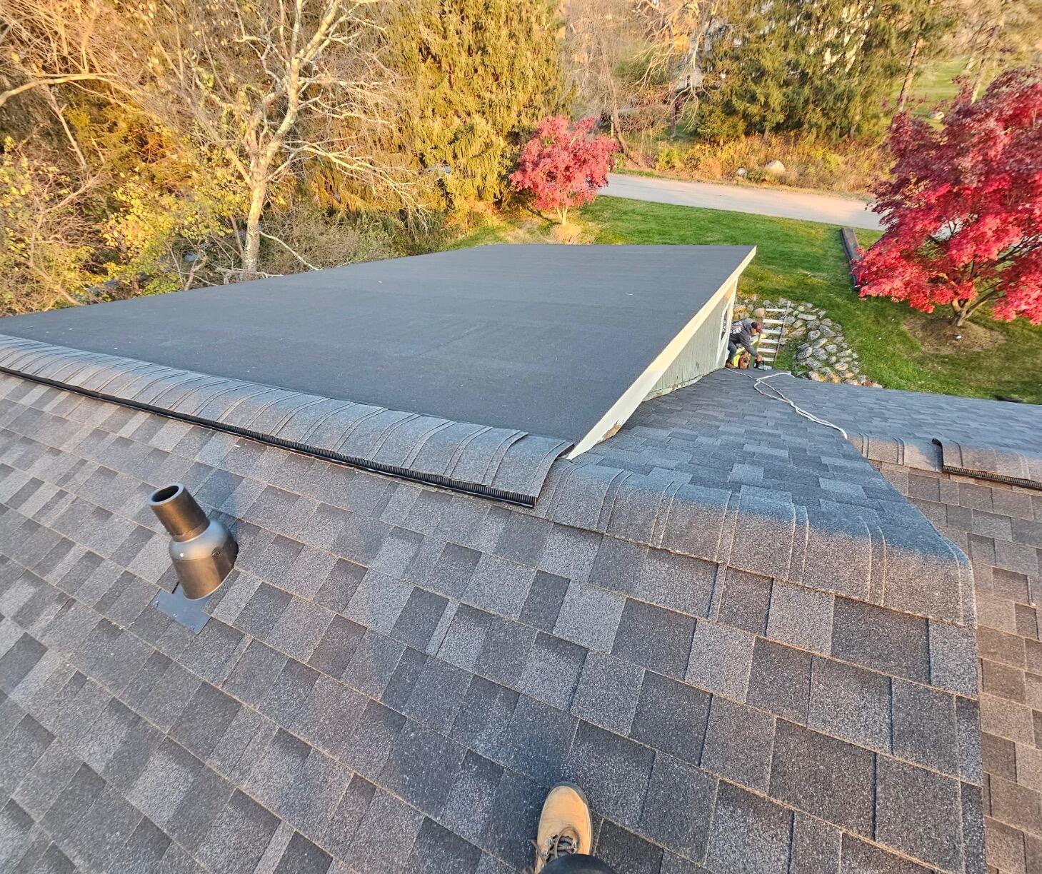 Our team removed the compromised sections, addressed the weakened decking, and installed a new roofing system to restore protection where it was needed most. The repair was completed using IKO Dynasty shingles in Granite Black, leaving Kevin with a clean, secure finish and a roof that can better handle heavy weather moving forward.