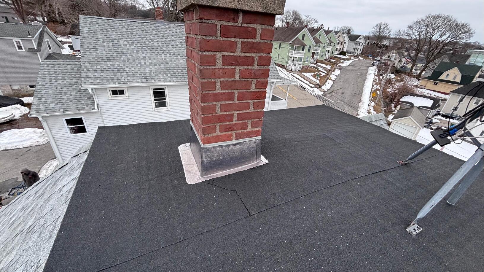 Evelyn from Groton, CT, owns this home with a flat rubber roof that had been replaced once since 1995, decided it was time for an upgrade. While her existing roof was leak-free, her insurance company had expressed concerns about the safety of flat roofs, particularly during snowy winters. Recognizing the need for a more reliable and durable solution, Evelyn turned to Klaus Larsen Roofing for help. Our team installed a new flat roof using the advanced PolyGlass roofing system. This high-performance option offers superior durability and weather resistance, ensuring her home is well-protected against the harsh New England elements. With her new PolyGlass flat roof in place, Evelyn now enjoys enhanced safety and the peace of mind that comes from investing in a trusted roofing solution. The Klaus Roofing Way!
