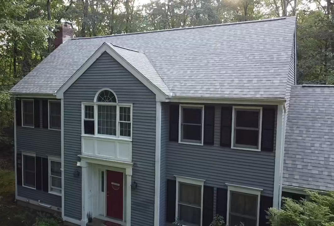 This incredible new roof was installed in Bethel by the Brown Roofing team. Our crew worked hard, installing new high-quality IKO Dynasty shingles in the color Glacier. This new roof is sure to keep this home safe and stylish for many years to come.
