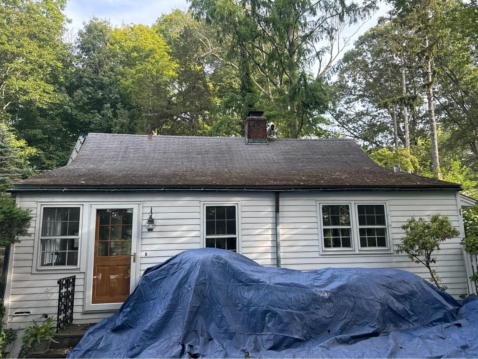 When Canaan homeowner Rebecca noticed a dip in her roof, she called Brown Roofing for help. Inspector Darwin’s thorough examination revealed heavy moss growth covering the entire roof: clear signs it was due for replacement. After reviewing our process and materials, Rebecca felt confident moving forward. Project Manager Geury and his skilled crew removed the old shingles, replaced damaged sections of plywood sheathing, and installed premium ice and water shield along with synthetic underlayment for maximum protection. The transformation was completed with IKO Dynasty shingles in Rebecca’s choice of sleek Granite Black, backed by our 50-year warranty. Now, her home shines with a roof that’s as beautiful as it is durable, built to protect her family for decades to come. Brown Won't Let You Down!