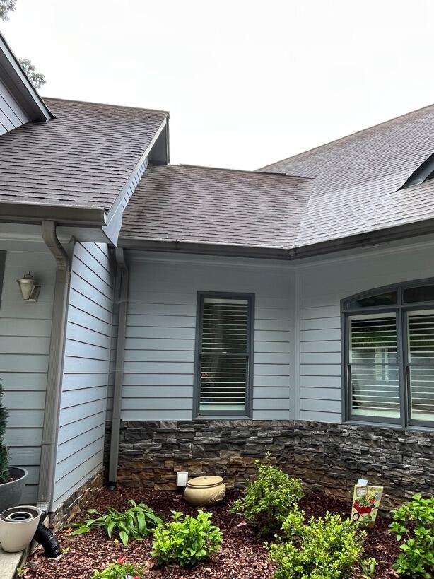 This homeowner was relieved to have a low maintenance solution to their issue with clogged gutters and downspouts. The sleek design allows water to flow into the gutter system while debris sheds easily. Another happy customer in Mableton, GA!