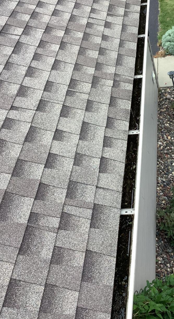 This seamless one-piece covered gutter system in St. Cloud, MN was damaged by a hailstorm over the summer. In conjunction with a roof replacement, Gutter Shutter was contacted to propose a replacement of the gutters with our similar two-piece covered seamless gutter system. While the systems may look and seem similar, there are a few key differences to point out: